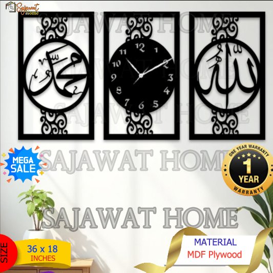 Allah Muhammad (SAW) Calligraphy Wall Clock