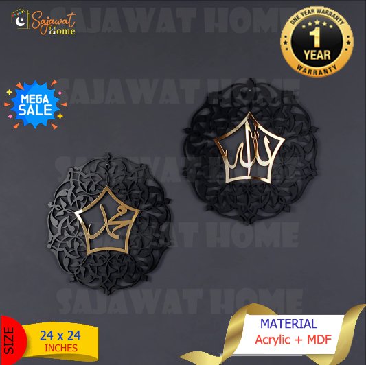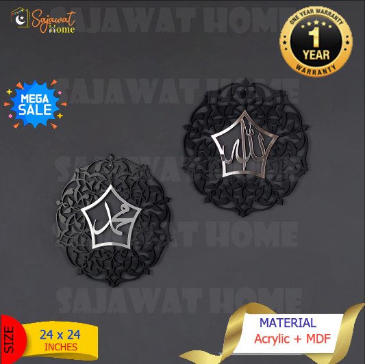 Sajawat Home introducing the Allah (SWT) and Mohammad (PBUH) Acrylic & Wooden Islamic Set, perfect for home and office use. Made with high-quality materials, this is not only stylish but durable and very elegant in design. The perfect gift for any occasion.