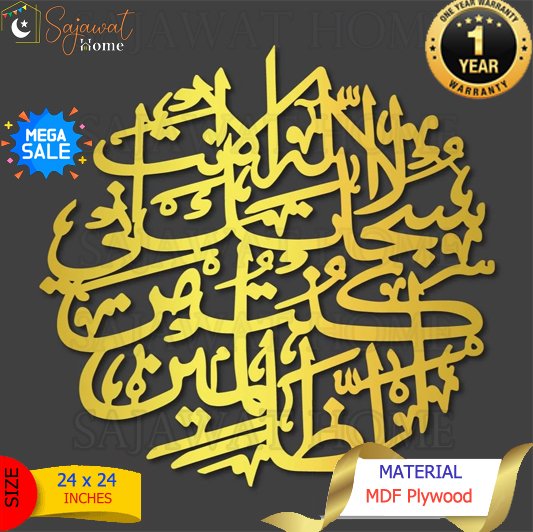 Sajawat Home introducing the Ayat-e-Karima Islamic Calligraphy Wall Art, perfect for home and office use. Made with high-quality materials, this is not only stylish but durable and very elegant in design. The perfect gift for any occasion.