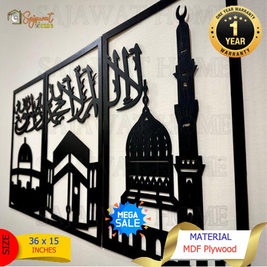 Kalma Islamic Wooden Art (Three Frames) for Home & Office Decor