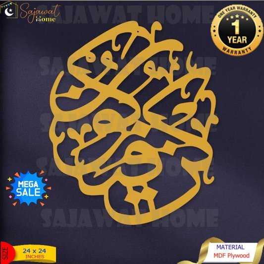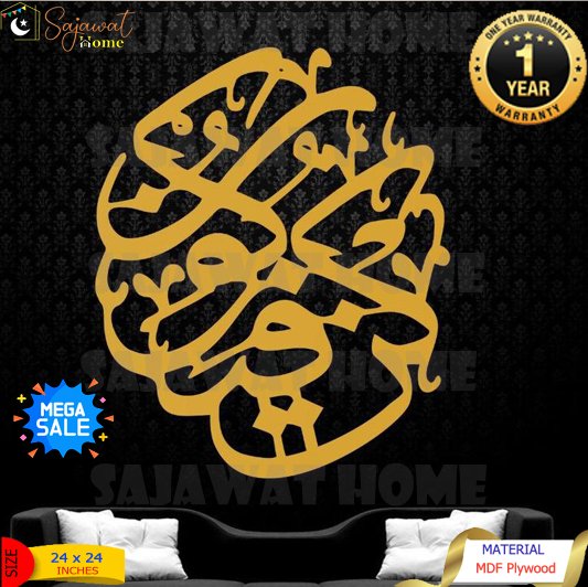 Arabic Calligraphy: Often features verses from the Quran (e.g., Ayat al-Kursi, Surah Al-Fatiha), names of Allah (Asma ul-Husna), or phrases like “Bismillah” and “Alhamdulillah.”