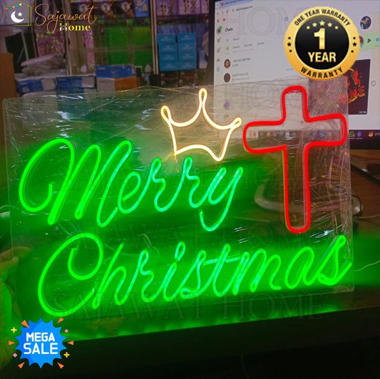 Sajawat Home brings you beautifully crafted Merry Christmas with Crown Design – Neon Light to spread joy, warmth, and festive cheer during the holiday season. Designed to celebrate the spirit of Christmas, this glowing décor piece blends modern style with a joyful holiday essence, making it the perfect addition to your home, shop, event, or festive setup.