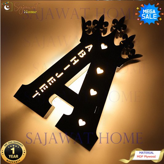 Sajawat Home presents a beautifully crafted Personalized Wooden LED Night Light, designed to turn names and memories into glowing art. Made from premium MDF pine wood, this custom alphabet lamp is perfect for gifting on birthdays, anniversaries, weddings, and special occasions. Its soft, warm LED light adds charm to bedrooms, offices, and living spaces — making it a meaningful keepsake for your loved ones or yourself. Elegant, durable, and uniquely personalized, this LED lamp brings creativity, warmth, and personality to any room.