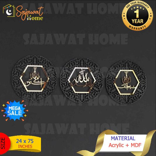 Sajawat Home introducing the Tasbeeh E Fatima (RA) Acrylic Mirror, perfect for home and office use. Made with high-quality materials, this is not only stylish but durable and very elegant in design. The perfect gift for any occasion.